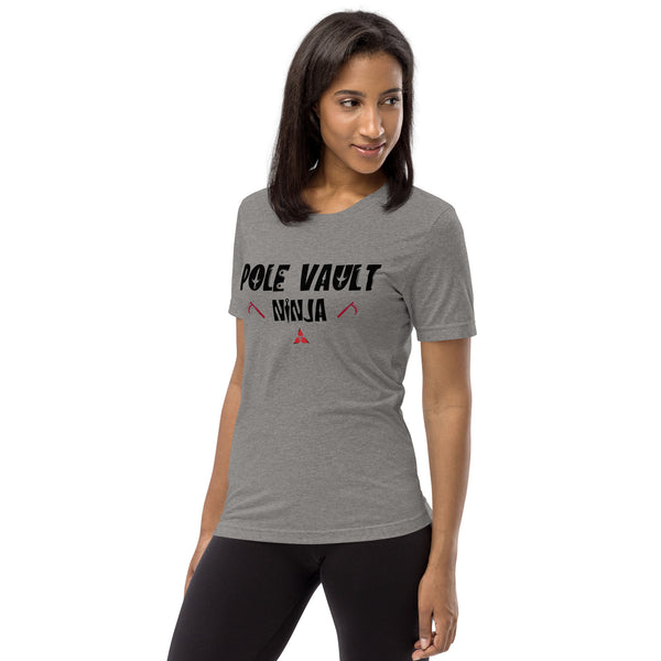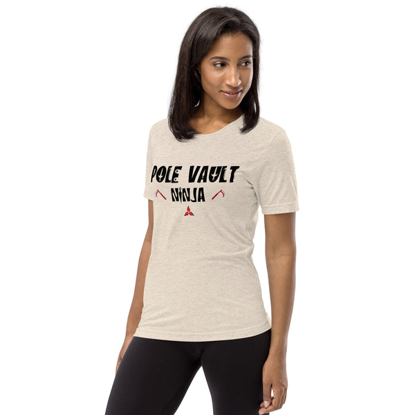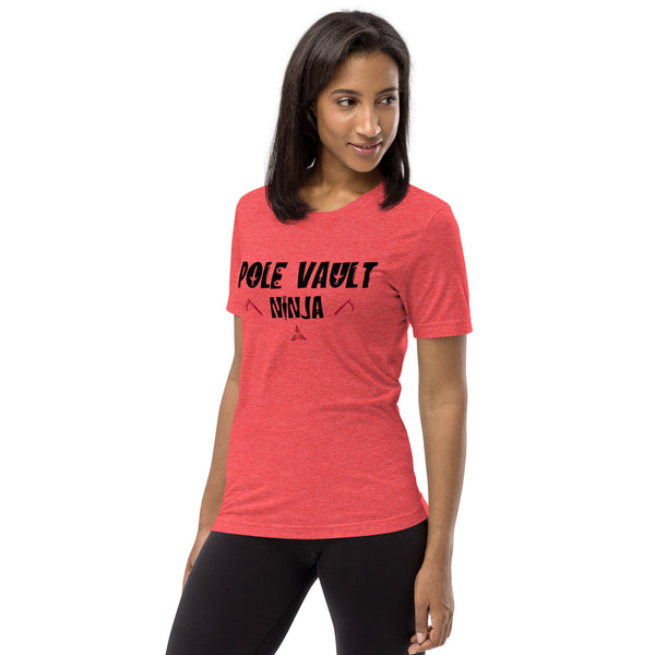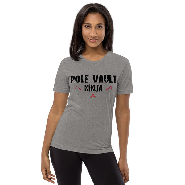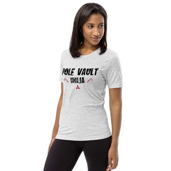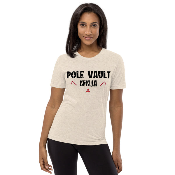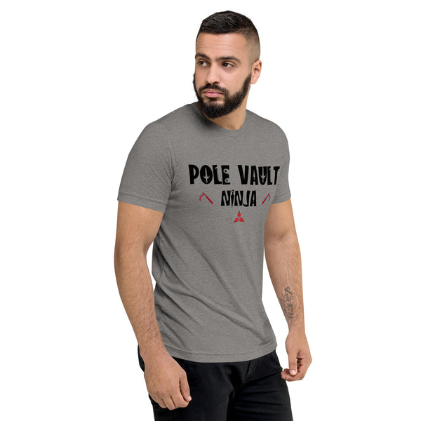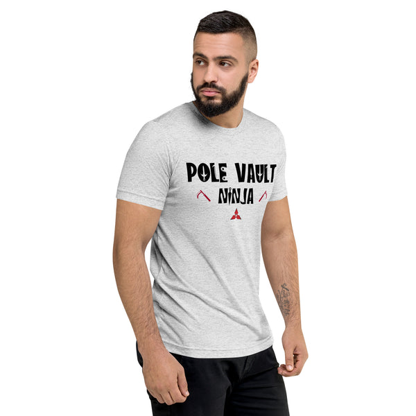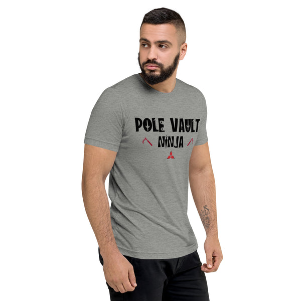 Material: Made from a tri-blend fabric that offers a vintage, fitted look, the "Pole Vault Ninja" shirt is crafted from 50% polyester, 25% combed ring-spun cotton, and 25% rayon. It provides a comfortable feel that lasts. Its exceptional durability allows it to withstand repeated washings while maintaining a comfortable fit.