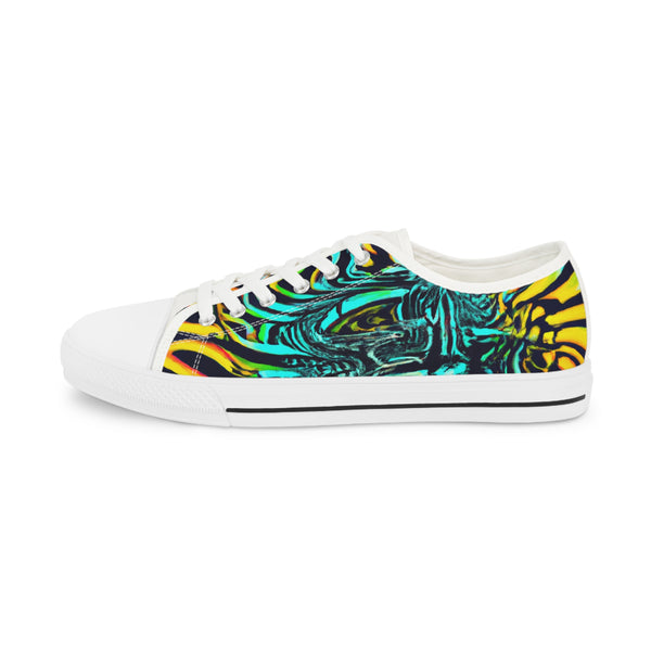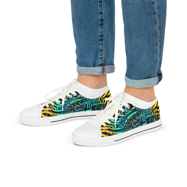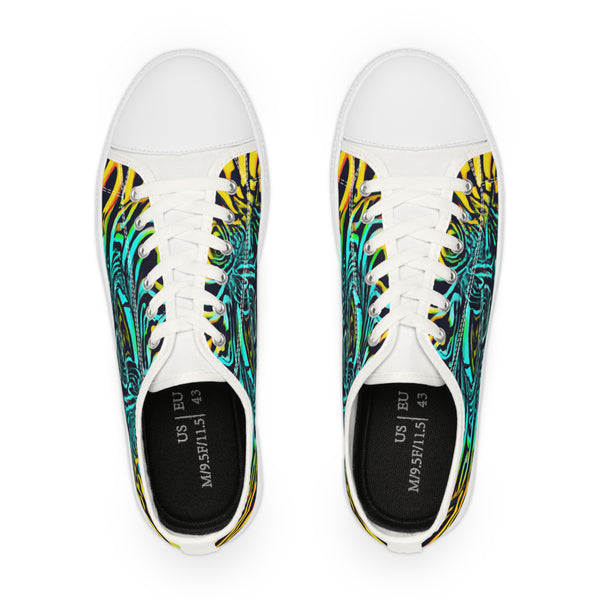 These low-top sneakers with trippy art are real head-turners! Rich neon colors come alive on the canvas, popping against the white midsoles - guaranteed to liven up any look. Wear them to stand out from the crowd and express your unique style. #neon #lowtopsneakers #trippyart #neoncolors #kicks #shoeaddict #streetstyle #uniquefashion #trendalert #sneakerstyling #everydaystyle #fashionstatement #stylelover #streetwear #boldlook #edgystyle
