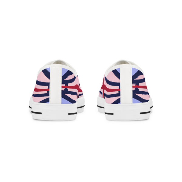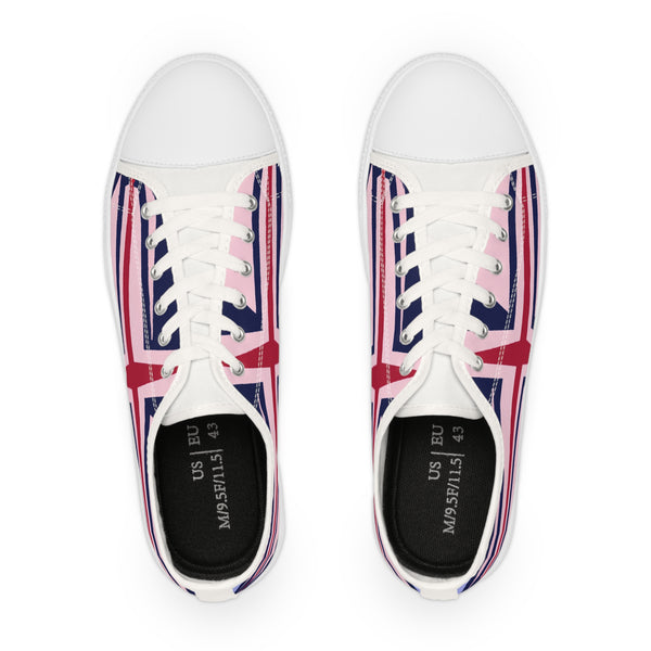 These chic low-top sneakers combine red, white and blue aesthetics with vibrant geometric art. The eye-catching lines create a modern look that's sure to turn heads. Whether you're out for a night on the town or leisurely strolling the streets, these shoes will have your outfit pop. And with a comfortable cushion that lasts long into the night, you get a statement look that's stylish AND practical. #lowtopsneakers #geometricart #fashionstatement #redwhiteandblue #modernaesthetic #geometricaesthetics #geometricstyle #stylestatement #fashionstatementlook #standoutstyle #streetstyle #trendylook #fashionista #styleinspo #shoeaddict #sneakerenthusiast