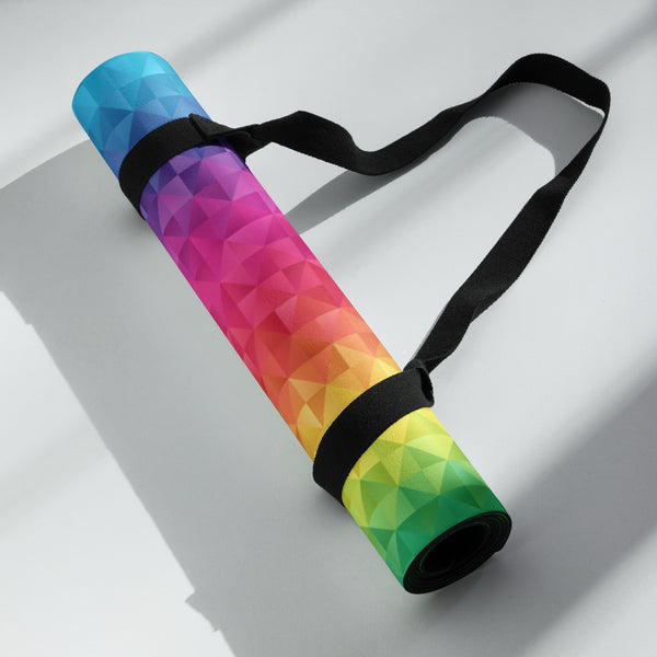 Bring color, balance, and performance to every session with the Geometric Rainbow premium yoga mat, designed for stability, comfort, and everyday practice. Featuring a bold geometric rainbow design, this mat is built for yoga, Pilates, stretching, meditation, and general fitness workouts—at home or in the studio.