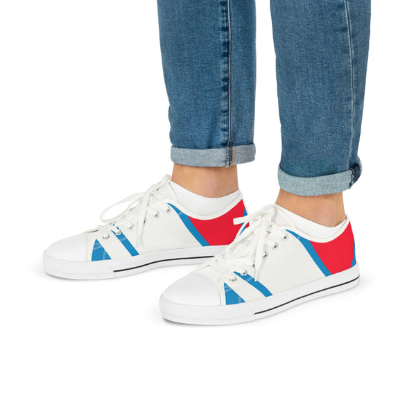 These geometric art sneakers add an edgy twist to your kick game! With unique design details and an eye catching combo of red, white and blue, you are sure to make a statement. The stylish low-top silhouette adds a sporty vibe to anything you pair them with. Get ready to be noticed! #GeometricArt #RedWhiteBlue #Sneakers #Style #Unique #Fashion #Design #Unisex #Classic #ColorBlock #Fashionista #CASualChic #SneakerHead #Trendy #Lifestyle #Footwear